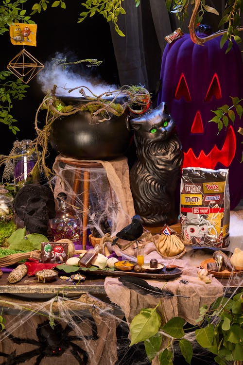 A witch’s brew needs SNICKERS® and one green spider, But don’t forget that TWIX® is also required. Add bright M&M’S® and the feather of a crow, And with a purple gourd, in the cauldron they go.