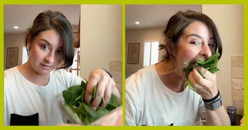 “I do this before I eat my actual lunch so I don’t have to pretend to like the taste or go through the process of hiding more greens/veggies into my preferred meal,” she wrote. “I find salads laborious to make and cumbersome to eat.”