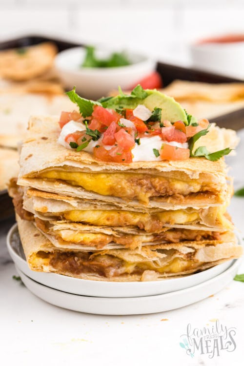 I quite literally always have tortillas, shredded cheese, canned black beans, salsa, and avocados in my house. It’s because quesadillas are quick and easy to make, and they feel like a pretty nutritionally complete meal. The sheet pan version from Family Fresh Meals looks perfect for making enough for my husband and me, plus a portion to put on my toddler’s plate so he can ignore it. I’ll probably add ground beef to ours.