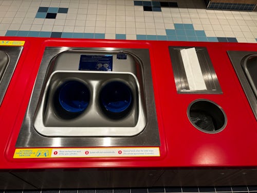 When you approach the Oceaneer Club entrances (there are two), you’re greeted by a counselor at a kiosk. There, your child can swipe into the club using their Magic Band and either stroll into the club or, if they’re coming from the floor above, take a slide down directly into the club behind the secure gates. (Bonus points: All Oceaneers must wash their hands in these really cool handwashing stations before entering. Yay for reducing the germs where we can.)